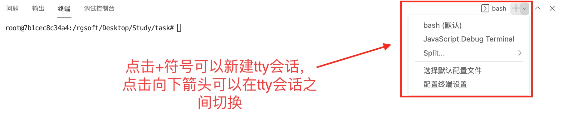 会在右下方看到打开的终端,可直接在终端中进行操作。