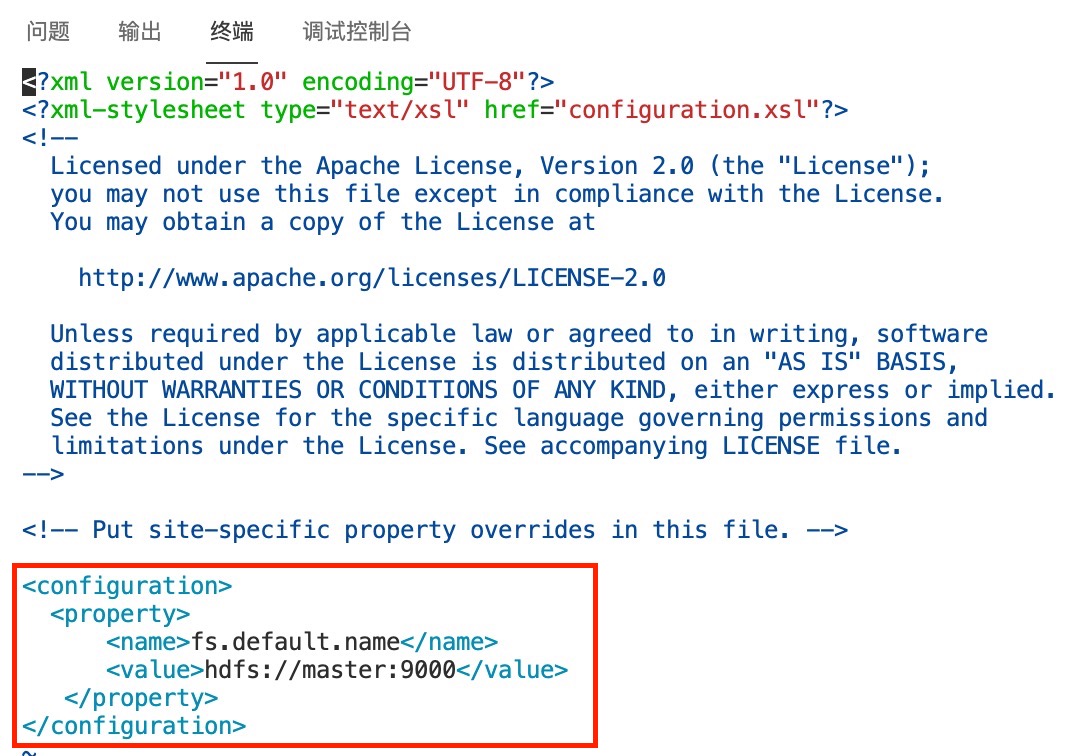 core-site.xml 使用vim命令编辑文件内容: