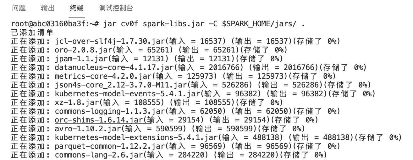 jar cv0f spark-libs.jar -C $SPARK_HOME/jars/ .
