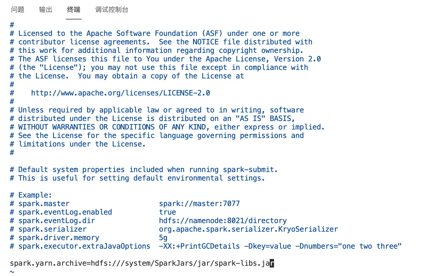 spark.yarn.archive=hdfs:///system/SparkJars/jar/spark-libs.jar