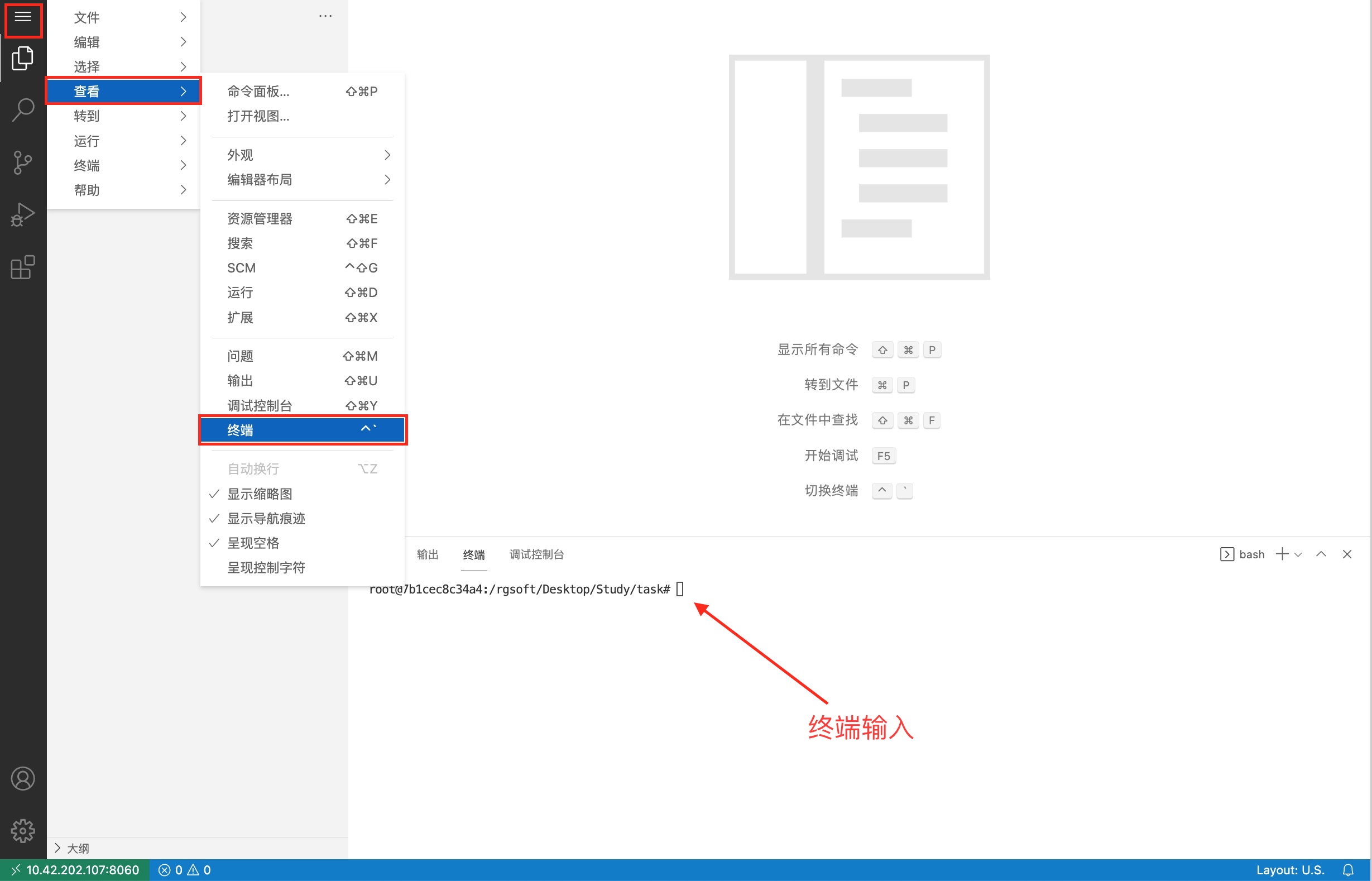 4、 会在右下方看到打开的终端,可直接在终端中进行操作。