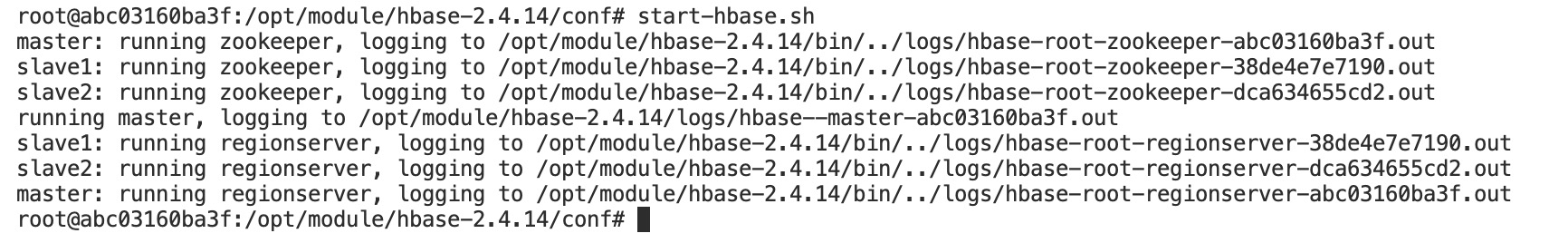 执行下面的命令启动Hbase,确保ZooKeeper分布式集群正常启动运行