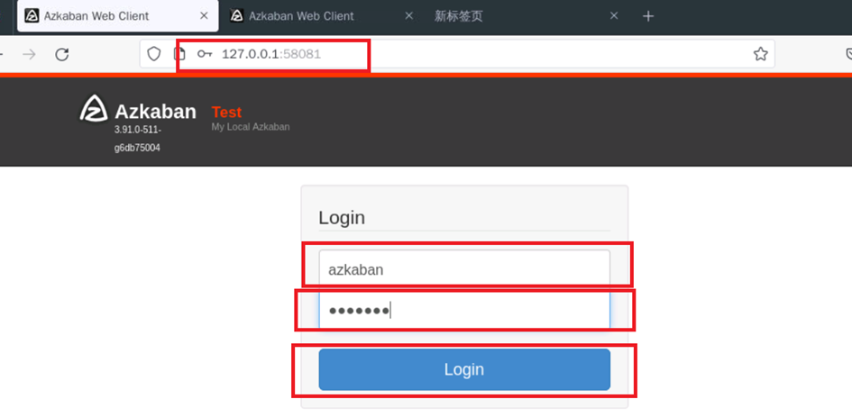 打开火狐浏览器输入http://127.0.0.1:58081/,并输入账号 azkaban和密码azkaban进行登录
