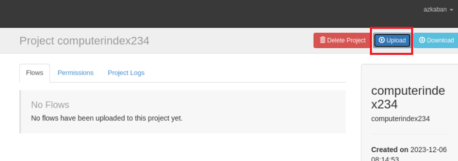 在azkaban的工程中上传打包好的压缩包文件