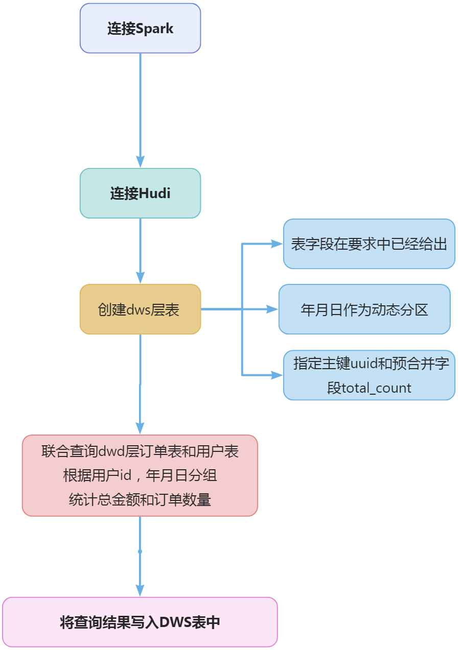 根据dwd_ds_hudi层表统计每人每天下单的数量和下单的总金额,存入Hudi的dws_ds_hudi层的user_consumption_day_aggr表中(表结构如下),然后使用spark -shell按照客户主键、订单总金额均为降序排序,查询出前5条,将SQL语句复制粘贴至客户端桌面【Release任务B提交结果.docx】中对应的任务序号下,将执行结果截图粘贴至客户端桌面【Release任务B提交结果.docx】中对应的任务序号下;