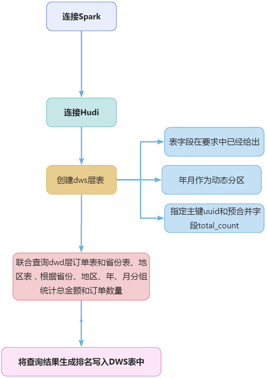 根据dwd_ds_hudi库中的表统计每个省每月下单的数量和下单的总金额,并按照year,month,region_id进行分组,按照total_amount逆序排序,形成sequence值,将计算结果存入Hudi的dws_ds_hudi数据库province_consumption_day_aggr表中(表结构如下),然后使用spark-shell根据订单总数、订单总金额、省份表主键均为降序排序,查询出前5条,在查询时对于订单总金额字段将其转为bigint类型(避免用科学计数法展示),将SQL语句复制粘贴至客户端桌面【Release任务B提交结果.docx】中对应的任务序号下,将执行结果截图粘贴至客户端桌面【Release任务B提交结果.docx】中对应的任务序号下;
