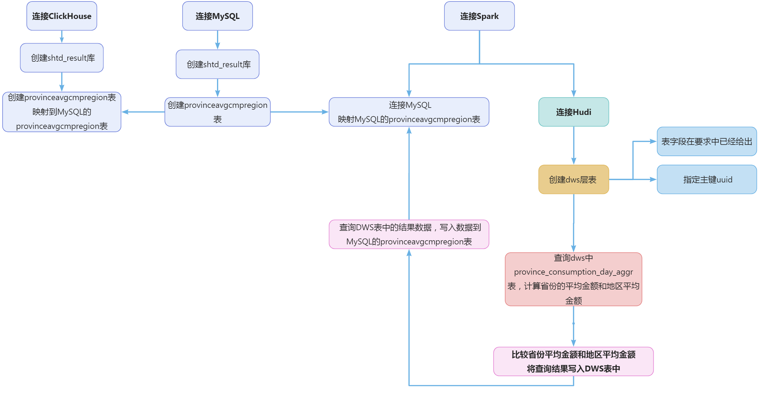 根据任务要求提供的表结构,建立dws_ds_hudi.provinceavgcmpregion hudi表。建表语句如下: